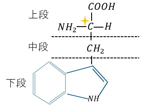 - 覚え方;フェニルアラニンに対して5角形がトリップしてきてトリプトファン