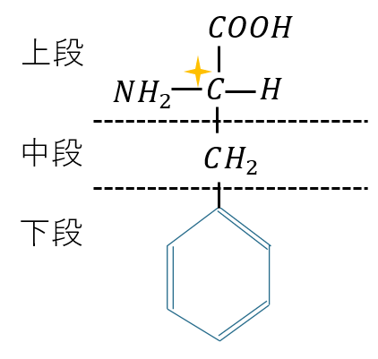 - 覚え方;ベンゼンのせいでアラニンより分子量が「増えるアラニン」