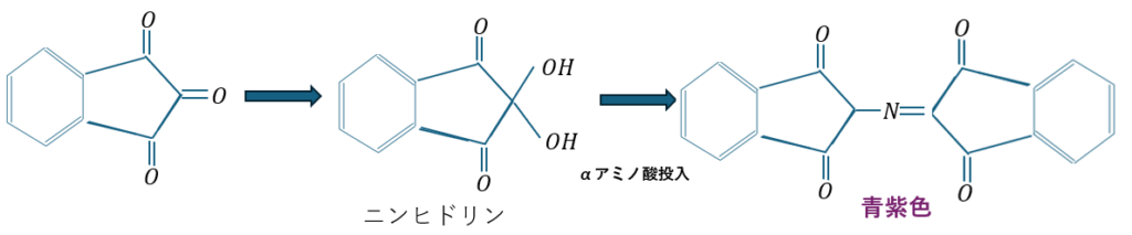 ニンヒドリン反応とは化合物がαアミノ酸のたんぱく質かどうかを調べる方法です。