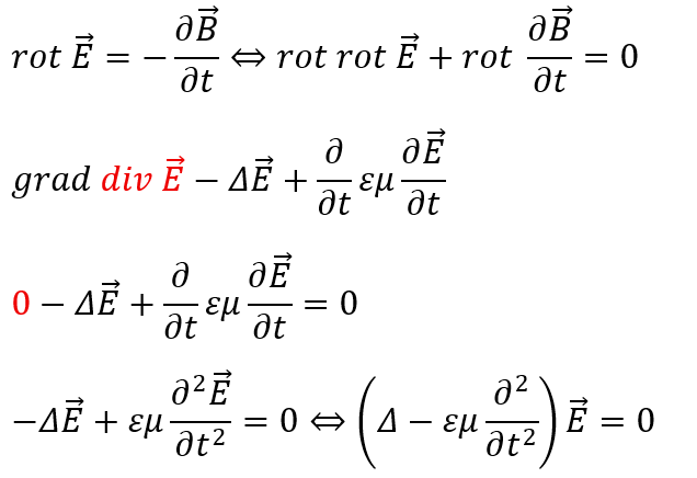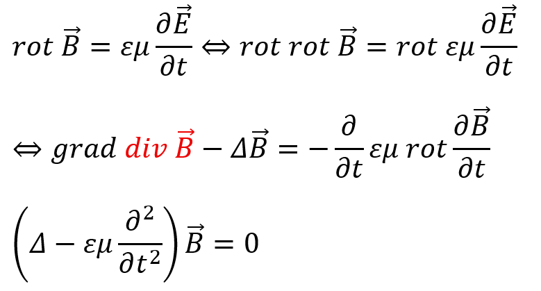 真空中での電場・磁場の波動方程式