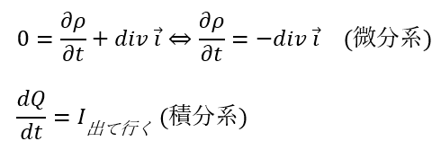 電荷保存の式の意味は「単位時間当たりに出て行く電気量は流れ出る電流の量と一致する」と言うことを表しています。