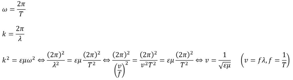 上の式から電波の速さを求めることができました。磁波も同様の速さになります。