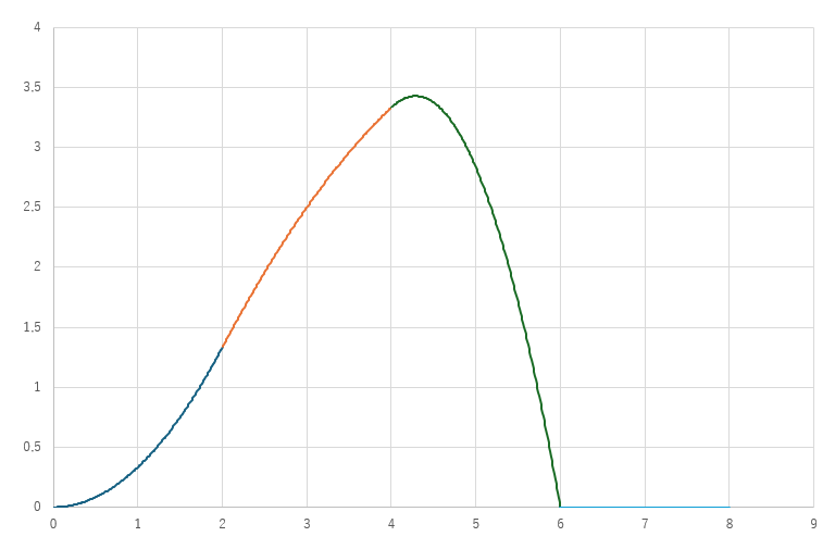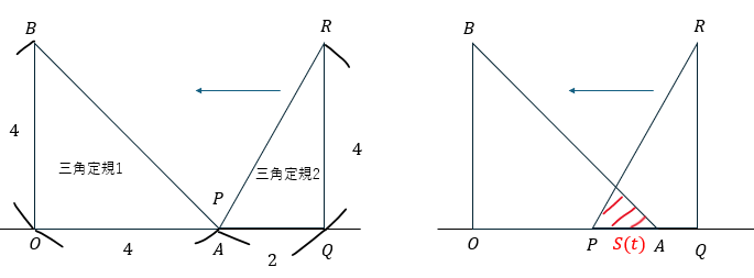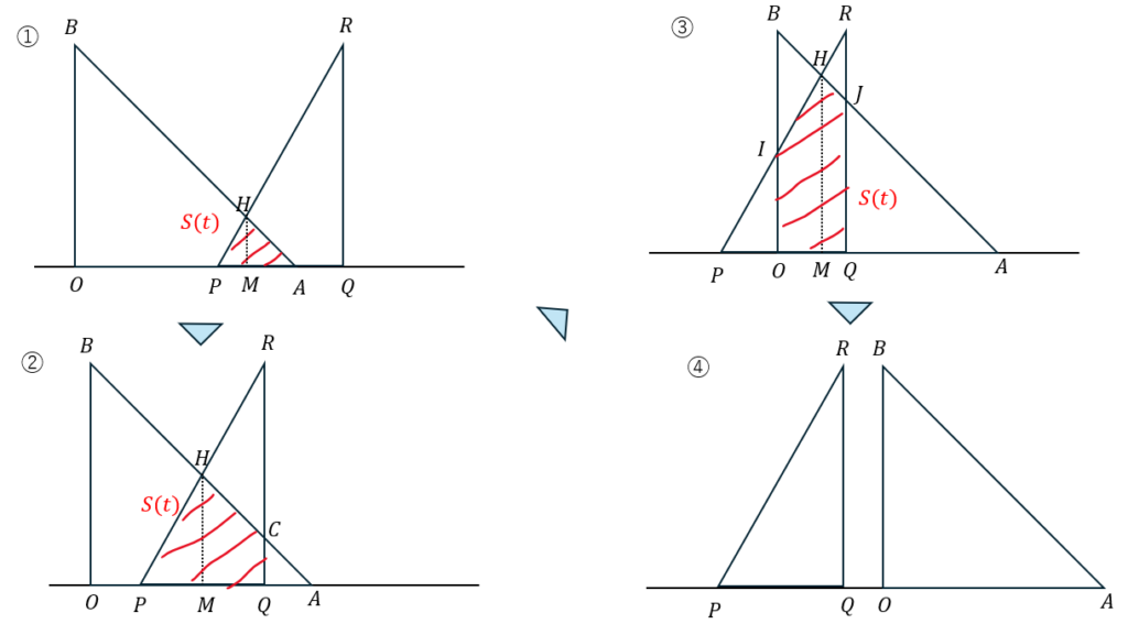 つまり、時刻によって重なった部分の形が変わるので面積の求め方が違います。