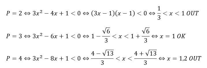 以上から、満たすPは「P=3」のみです。