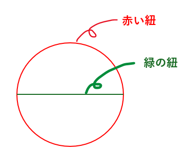 - 緑の紐の長さ・・・円の直径