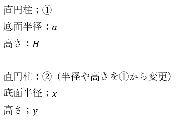 - 直円柱の底面半径と高さを特定の値にする (直円柱①)