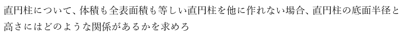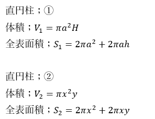- 直円柱①と体積・表面積が同じ直円柱はできない