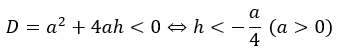 そもそも、hは0より大きいので、判別式の条件は不適当です。