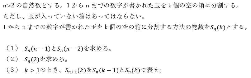- Sn+1(k);n+1個の玉をk個の箱に分ける