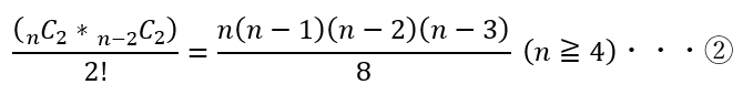 これは、「n個の玉から2つの玉を選ぶ」⇒「n-2個の玉から2つの玉を選ぶ」場合の数を求めれば良いだけです。