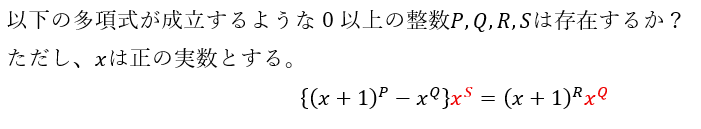 どういうことかというと、P,Q,R,Sが特定の数なら、xが(正の実数なら)どんな値でも成立するということです。