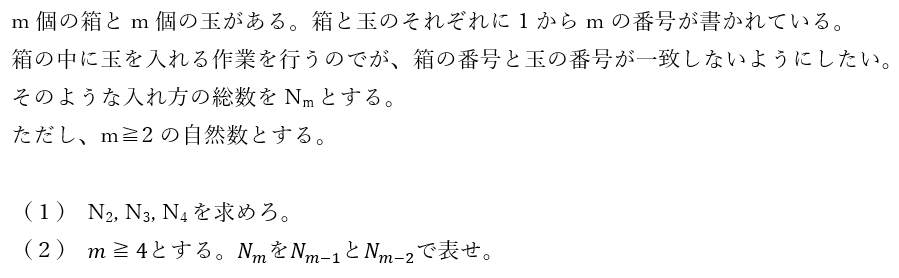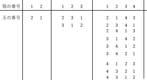 以下に示すのはこの記事で取り組む完全順列に関する問題です。