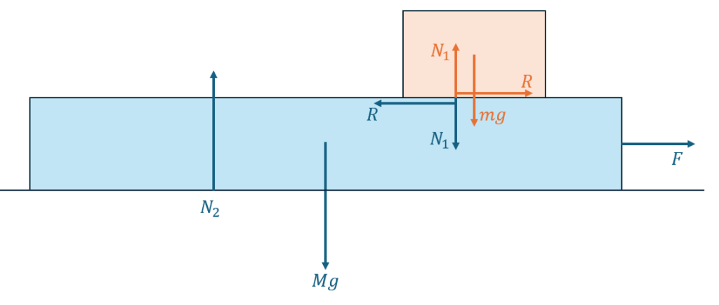 以下に示すのは摩擦力に作用・反作用の法則が絡んだ問題です。