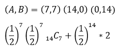 14回サイコロを投げて同じ点に戻ってくる確率はmod 7で計算して合計が0になればいい(7の倍数になる)ですよね。