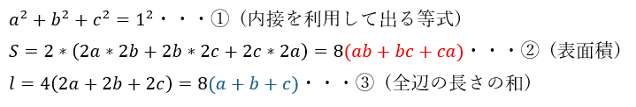 表面積を全辺の長さで表すことが出来ました。