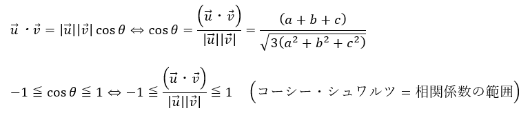 - 不等式の最右辺・・・2つのベクトルのなす角が0°