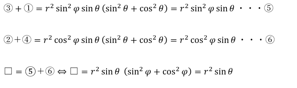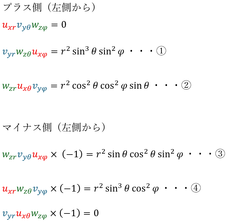 以上により3次元球面極座標のヤコビアンを求めることができて・・・