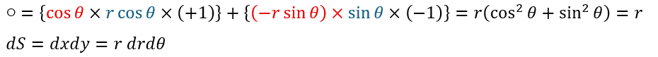 以上により二次元極座標への積分変数変換が完了しました。