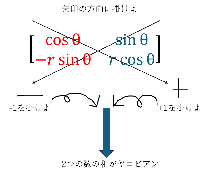 ただ、注意してほしいのが、本記事ではヤコビアンがどうしてそのような方法で求められるかの理由は解説しません。