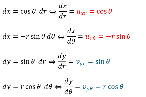xとyをrとθで微分すると4つの項が出てきます。