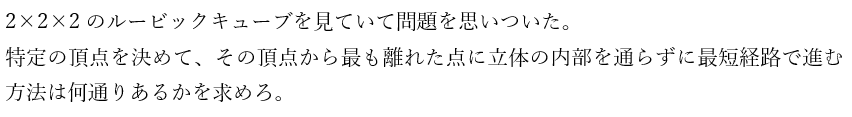 上の記事では平面な道における最短経路でしたが、もしも、これが立体図形になったらどうなるでしょうか?
