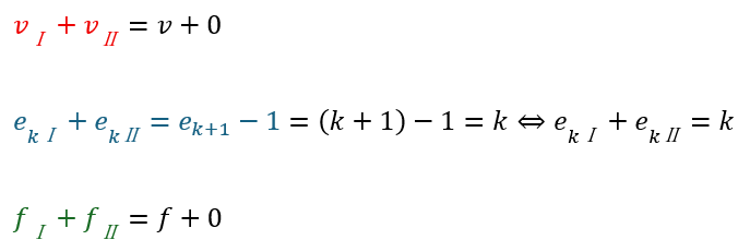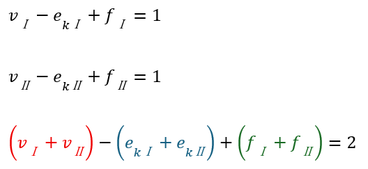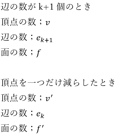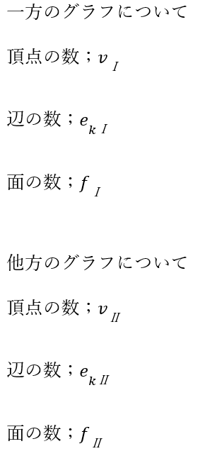 パターン②は平面グラフが二つに分裂するので頂点・辺・面の数を以下のように設定します。