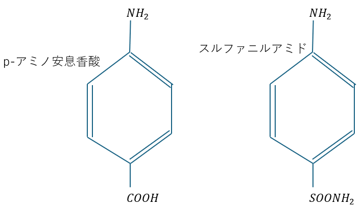 - 病原菌はp-アミノ安息香酸でしか葉酸を合成できない