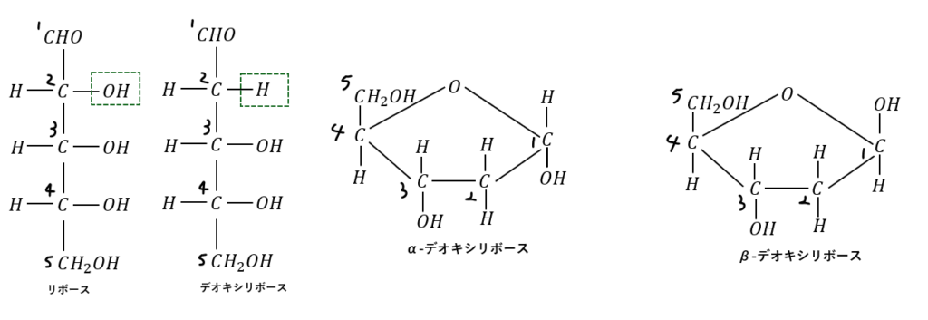 デオキシリボースとはリボースをデオキシ化したものです。