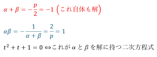 3つの実数解に関して1つの解が他の2解の和になっていることがあります(この他にも等比数列になっている問題などもあるが・・・)。