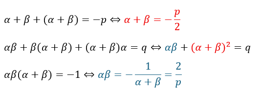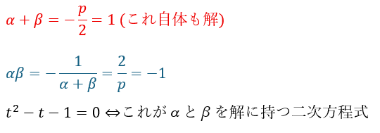 赤い部分と青い部分を真ん中の式に代入すればpとqの関係式を割り出せます。