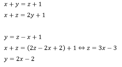 - 最後に③をxの式で表してxを特定→yとzの特定