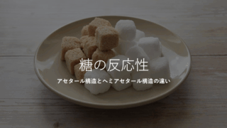 天然有機物 糖の反応性 アセタールとヘミアセタール構造の違い まとめ こんにちは。Horyです。前回の記事では糖に関する知識に関して記事にまとめました。天然有機物 糖の性質と分類 まとめ今回の記事では糖の反応性に関してまとめるとともに、発展的な内容として糖のアセタール構造とヘミアセタール構造の違いをまとめよう... 2025.10.08 天然有機物高校化学