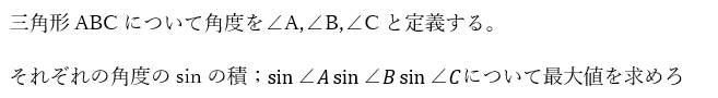 “sin A sin B sin C”の最大値 角度がバラバラのsinの積