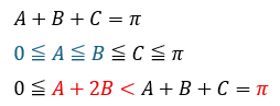 何で上の赤い式を登場させたかというと、上でA,Bだけの式にしたために、角度A,Bの条件式を増やしたいと考えるからです。